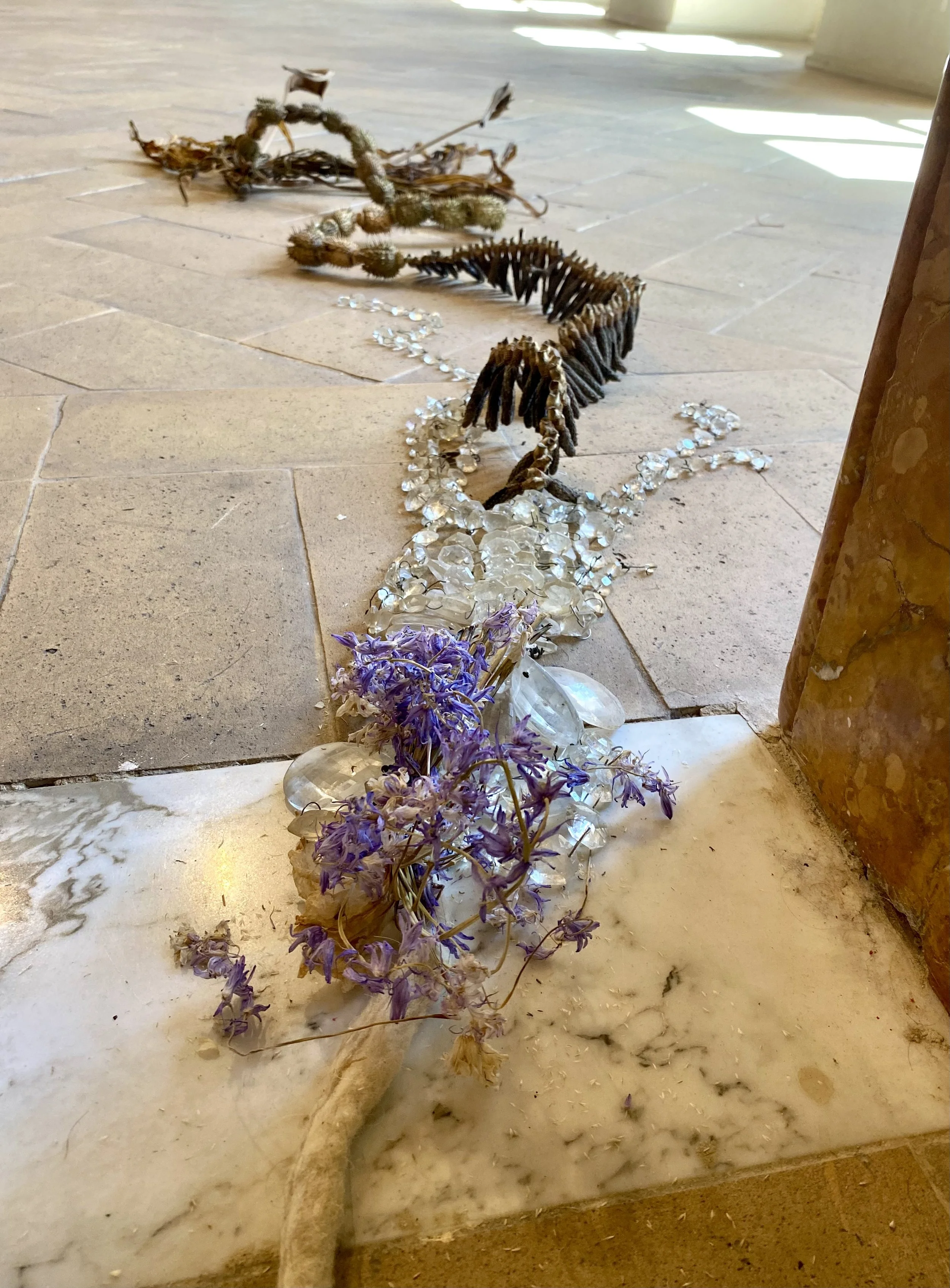 What struck me most was how the piece (about 492 feet long) led you through the entire space. I wanted to know more and more and more - to follow it wherever it took me. It was both leader and companion through all 12 rooms of the Palazzo, until discovering at the end, the vine-like piece was actually the tail of a snake with a woman’s bust…. sister herself.