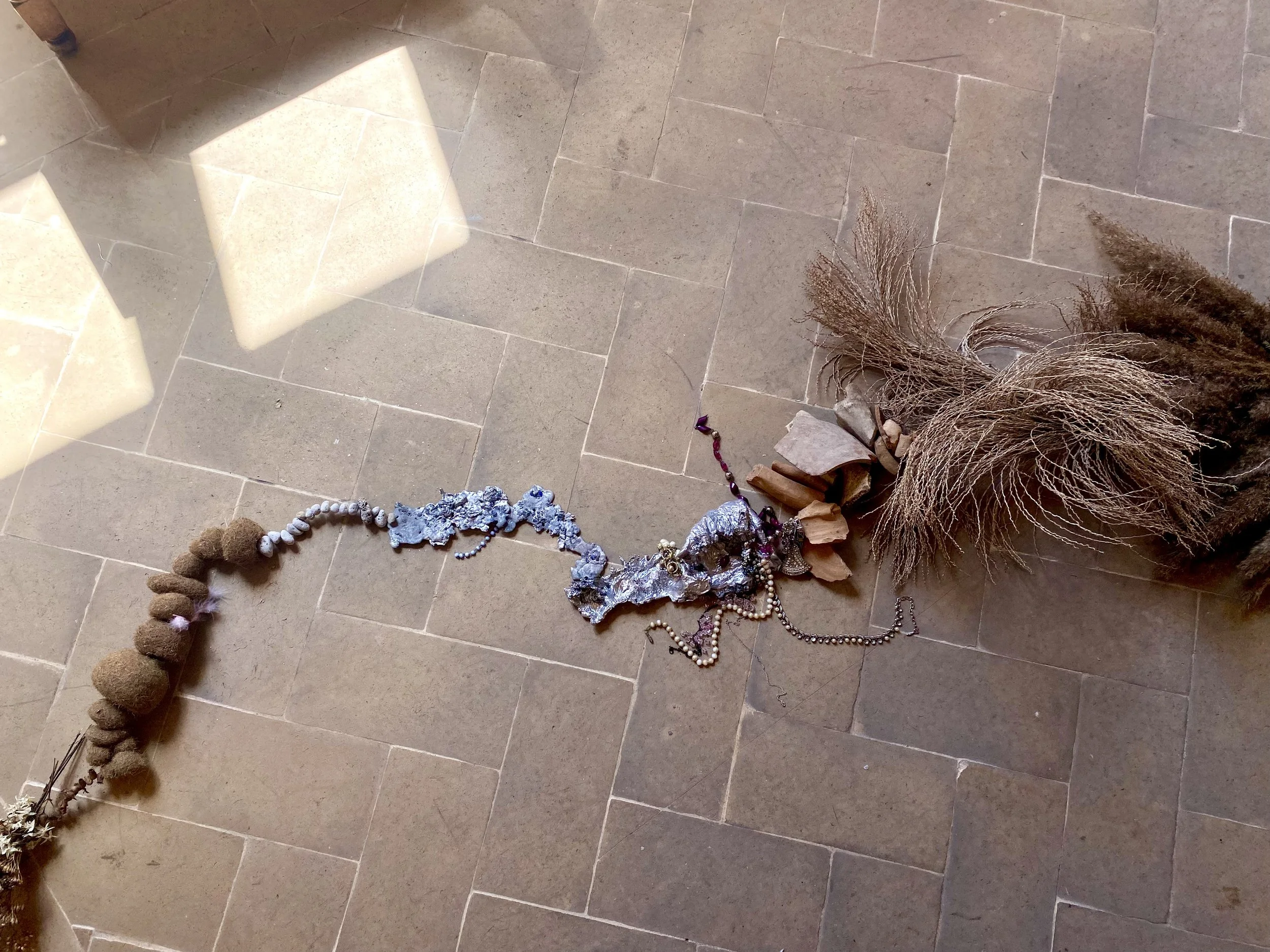 I felt deeply connected to what the process must have been like for the artist - her quietly sourcing objects from the earth, assembling them with dedication, curiosity…. and a sense of something divine. That energy was present. And that’s what contemporary art brings into a space - a freshness that can’t be manufactured.